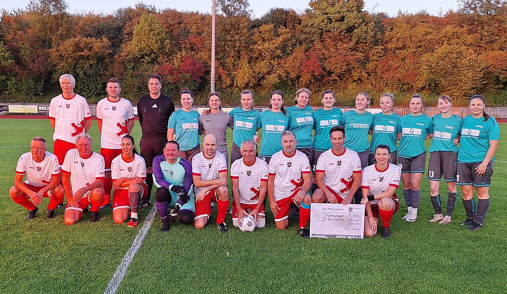 Großer Bahnhof in der Kurstadt. Zu Gast auf dem schönen und sehr gepflegten Rasen des Sportzentrums in der Pommernstraße war die Fußball-Auswahl des Hessischen Landtages, die Landtagself. Gegner, und das war von beiden Seiten so besprochen, war die Frauenmannschaft des FC Weimar/Lahn aus dem Lahn-Dill Kreis, die im „normalen“ Spielbetrieb in der Frauen-Gruppenliga Nord-West beheimatet ist und in der Abschlusstabelle der Saison 2024/2025 einen hervorragenden 4. Platz belegten.